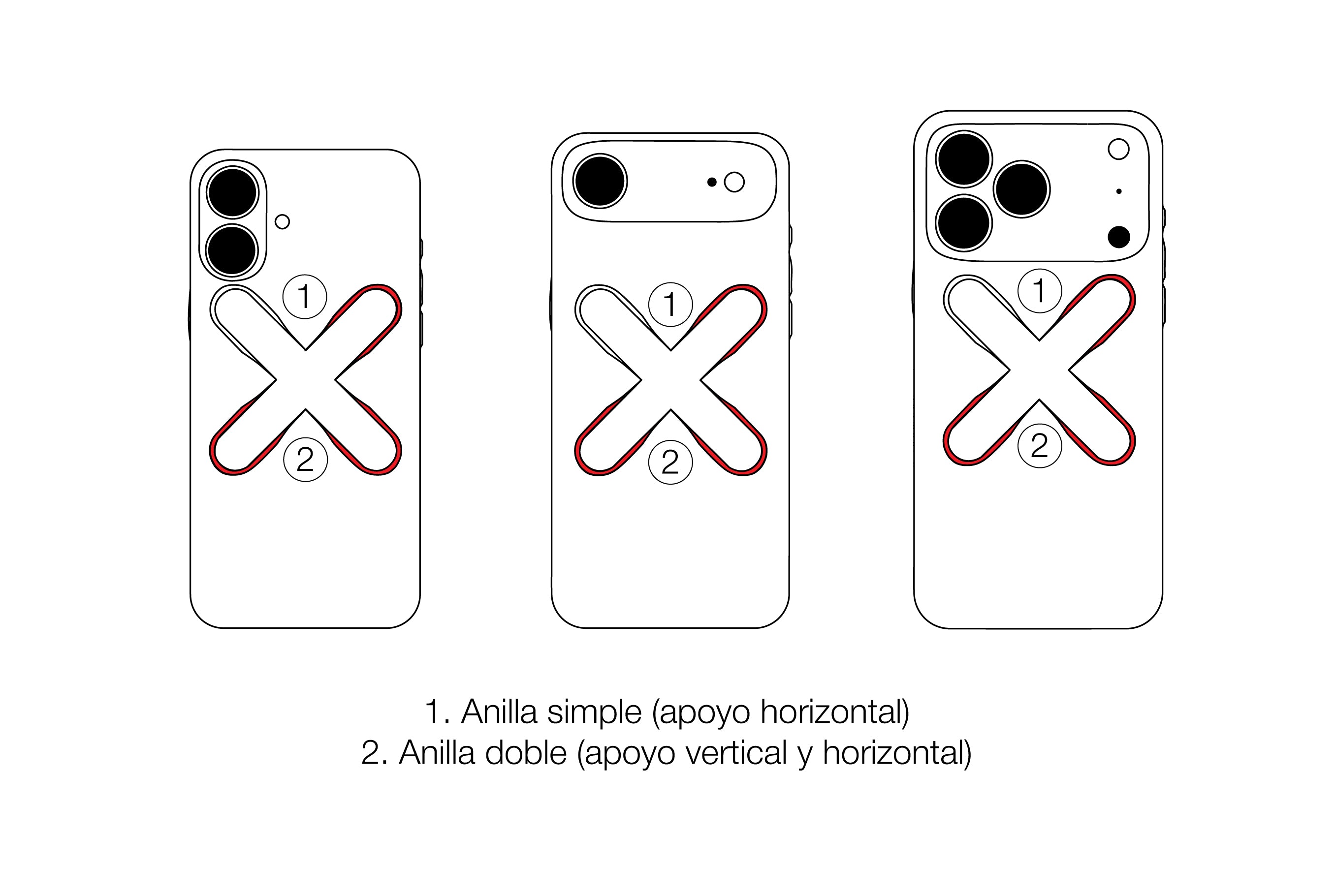 - The ring that allows the cell phone to be placed on the table must be positioned on the upper right side.